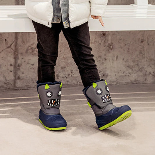 Winter Children Snow Boots Boys Girls Warm Waterproof Ski Boots Baby Cute Cartoon Dinosaur Print High Boots