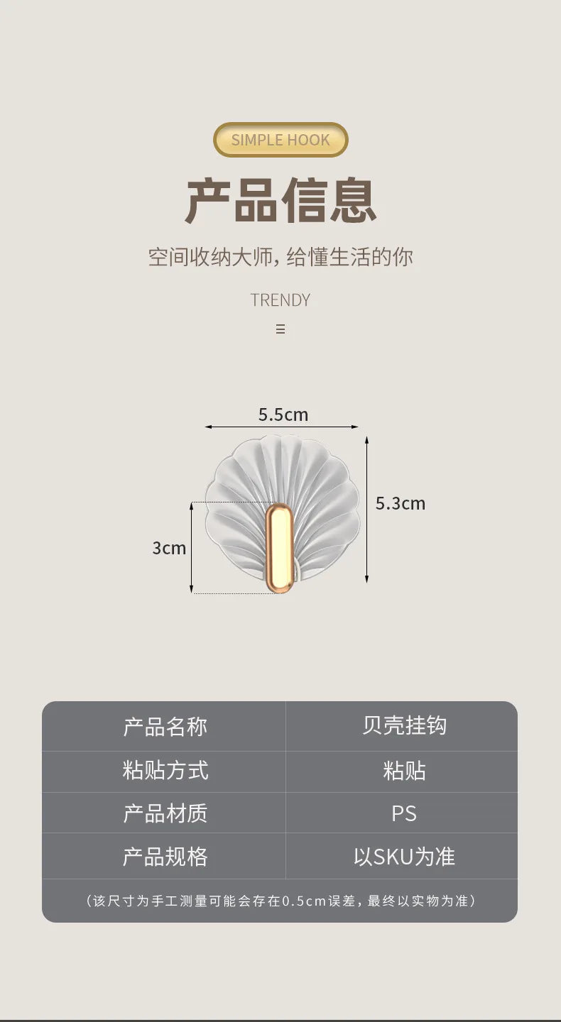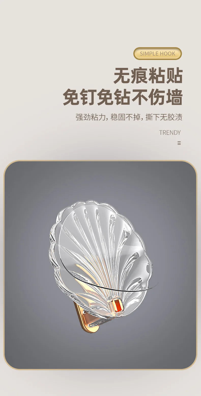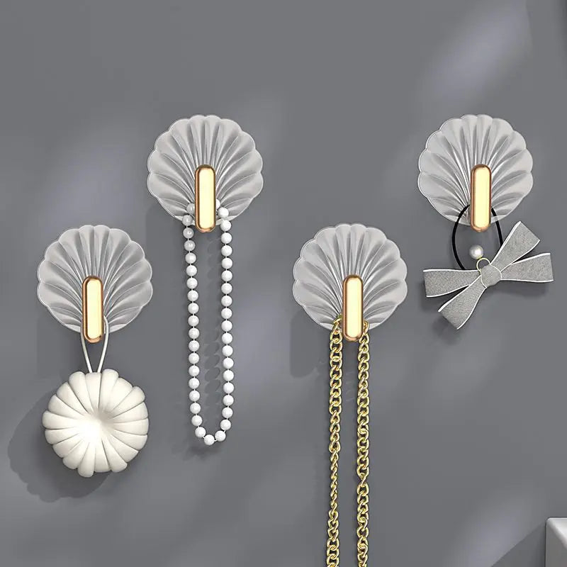 4pcs/set Multipurpose Shell Shape Hook Wall Hanging Hooks Self Adhesive Storage Hook For Bathroom Kitchen Bedroom Key Decor