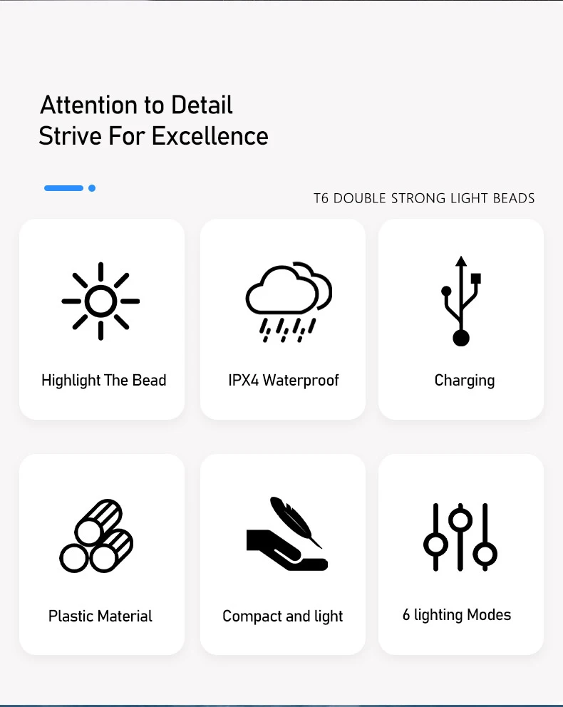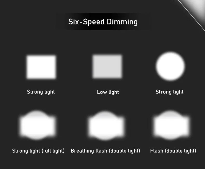 6 Lighting Modes:Strong Light-Low Light-strong Light-Strong Light(Full Light)-Breathing Flash(Double Light)-Flash(Double Light)