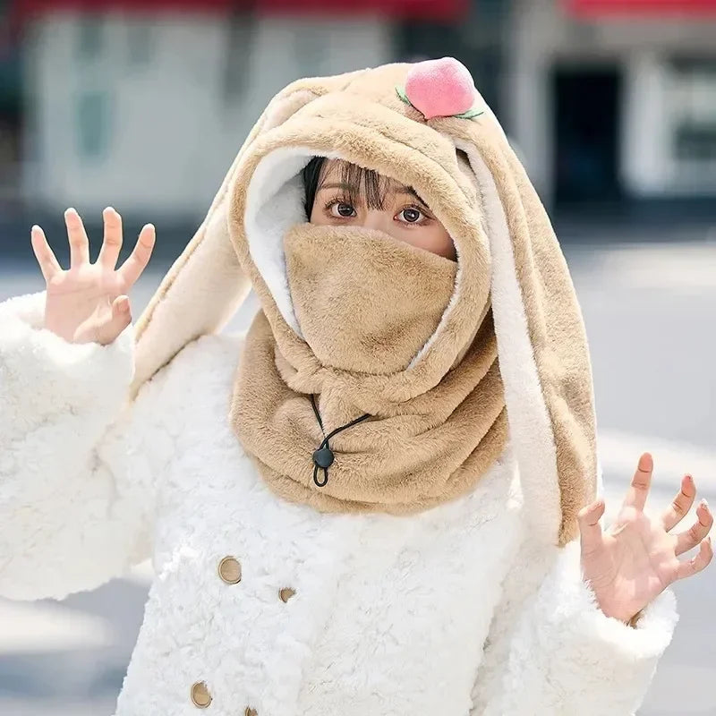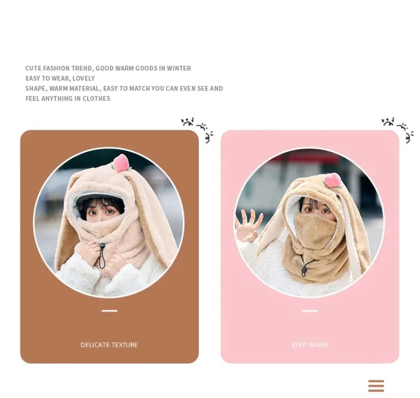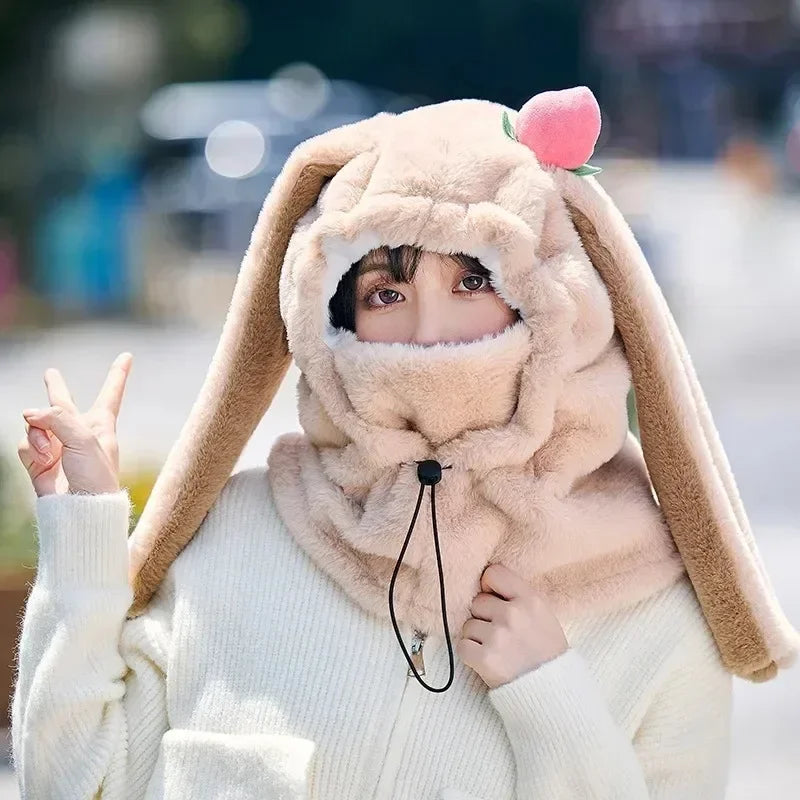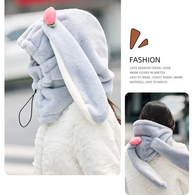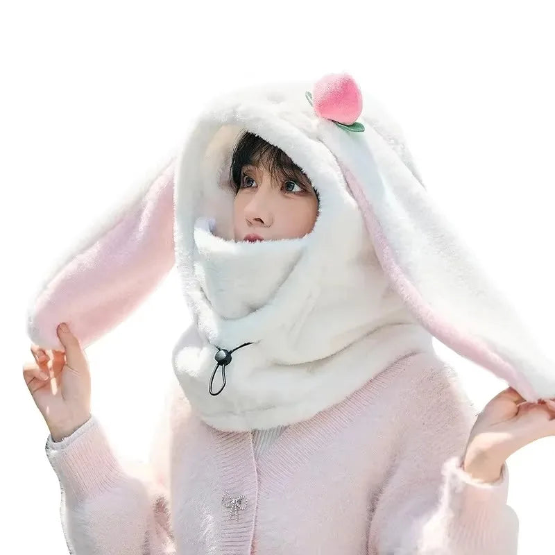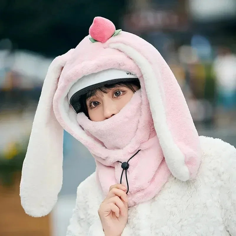 Cartoon Rabbit Ear Ski Helmet Cover Comfortable Soft Cycling Skiing Helmet Hat Lovely Winter Warm Plush Cap for Girl Women