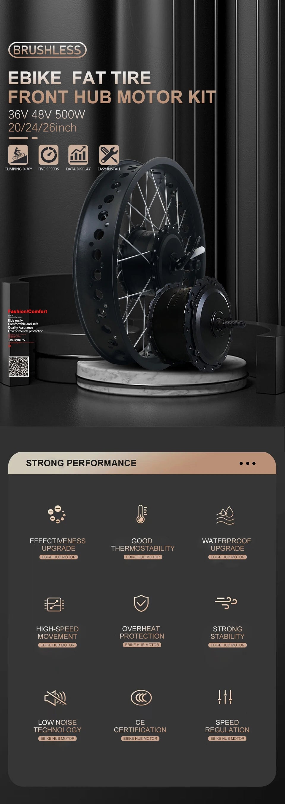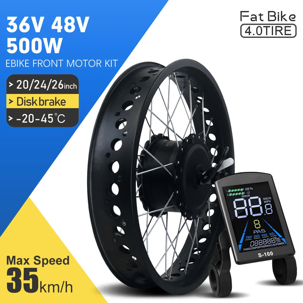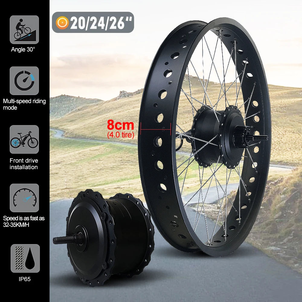 Electric Bicycle Fat Tire 20/24/26Inch 4.0 Tyre 36V 48V 500W Brushless Gear Front Wheel Hub Motor For Snow Ebike Conversion Kit