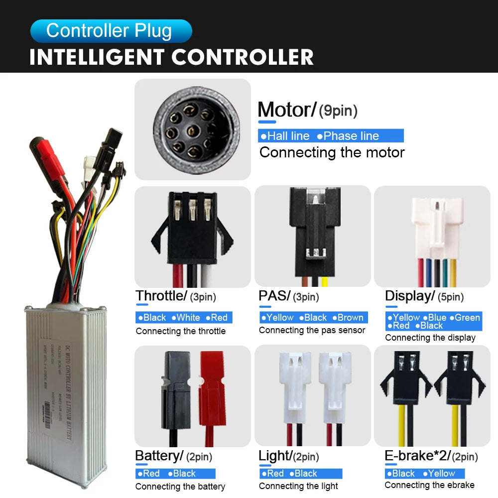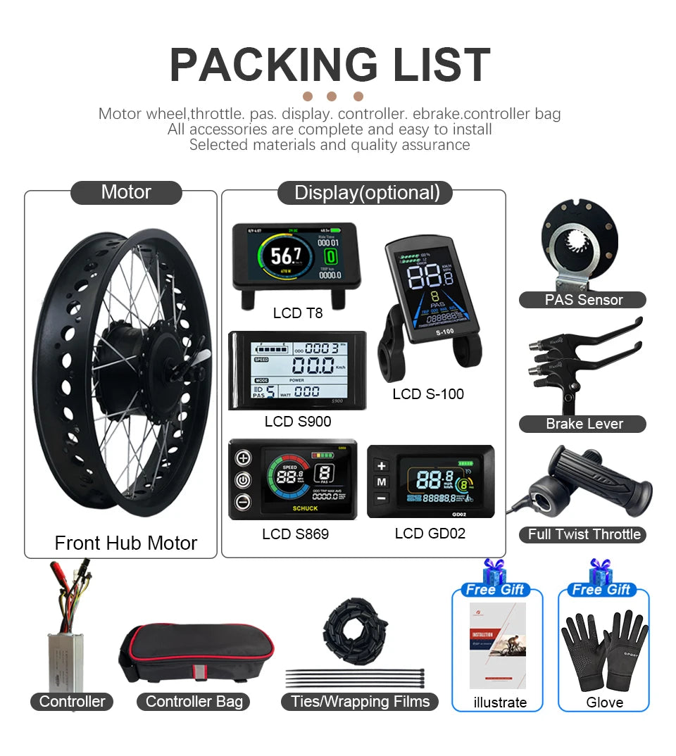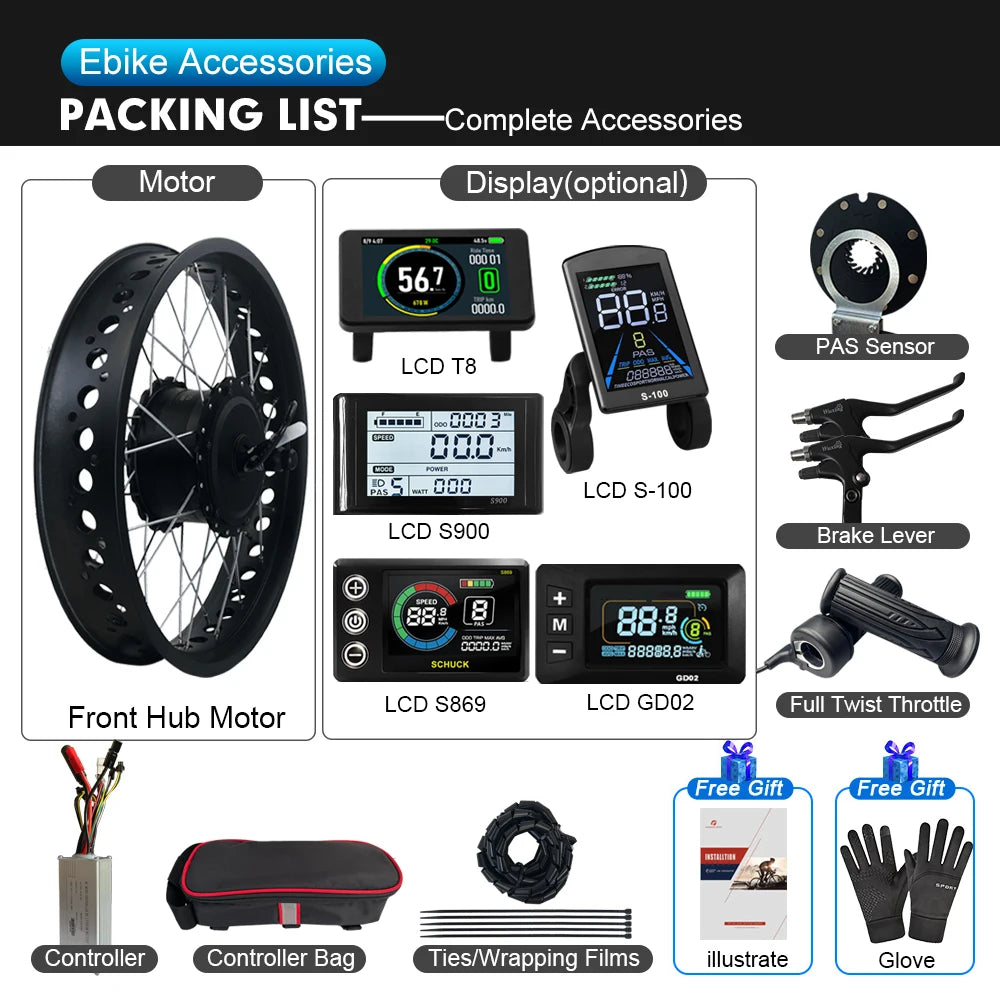 ✅[Complete Accessories] Equipped with all necessary accessories. Front wheel and motor, controller, display (optional), brake lever, thumb throttle, PAS, extension cable, controller package.