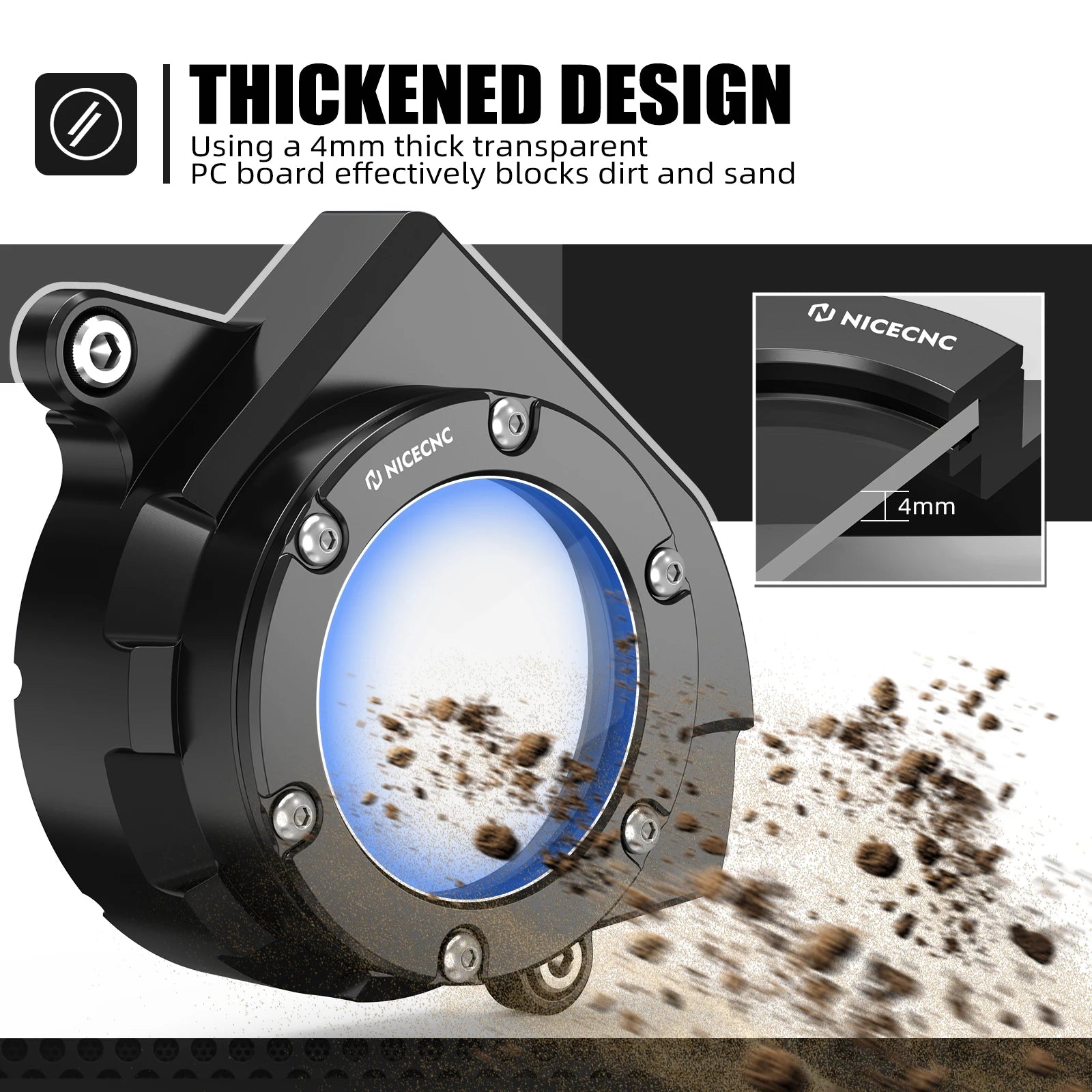 【Thickened Design】Using a 4mm thick transparent PC board, it effectively blocks mud and debris, preventing dirt from directly entering the pulley area and causing damage.