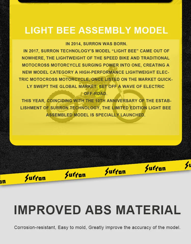 This year, coinciding with the 10th anniversary of the establishment of SURRON Technology, the limited edition Light Bee assembled model is specially launched.